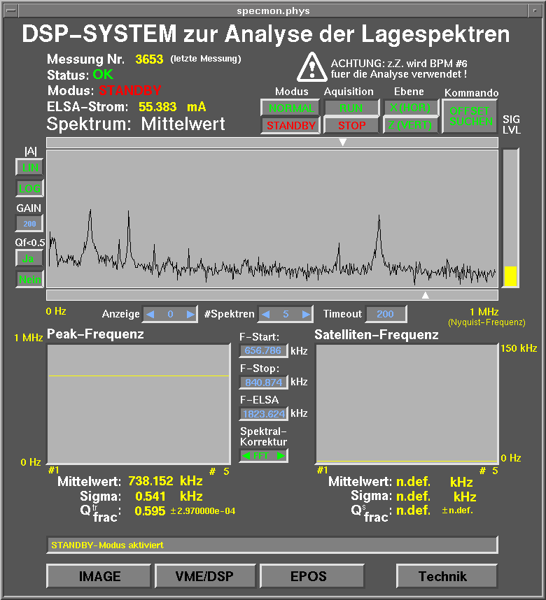 This menu presents one example of the integrated beam diagnostics of the control system at ELSA. You can see the spectrum of the transverse betatron motion. The spectrum is calculated online with the help of a DSP system.